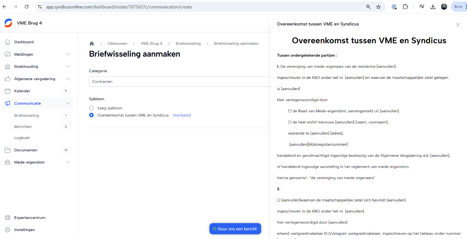 Je vindt een voorbeeld template van een contract in jouw SyndicusOnline.