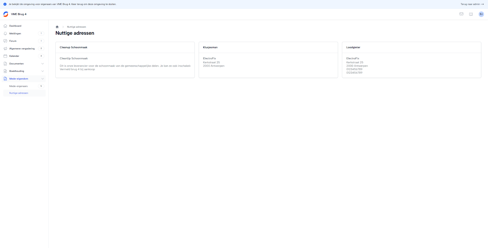 Dit adres wordt nu toegevoegd aan je nuttige adressen en nu kan zowel jij als je mede-eigenaars deze raadplegen.